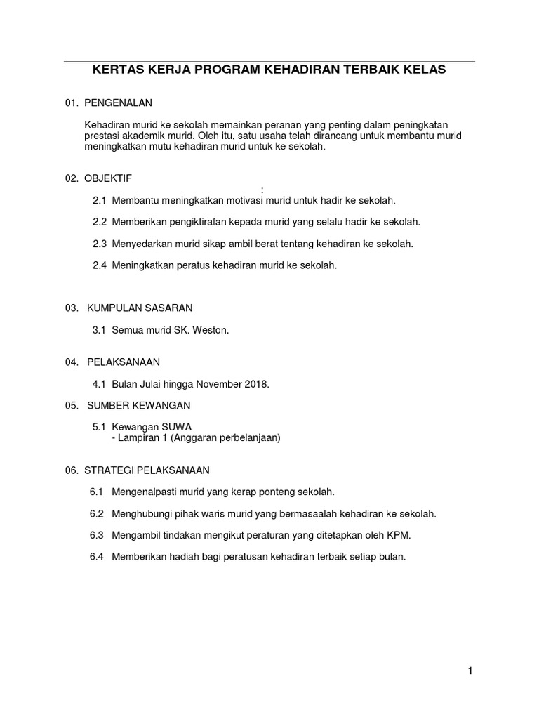 Kertas Kerja Program Kehadiran Terbaik Kelas Pdf