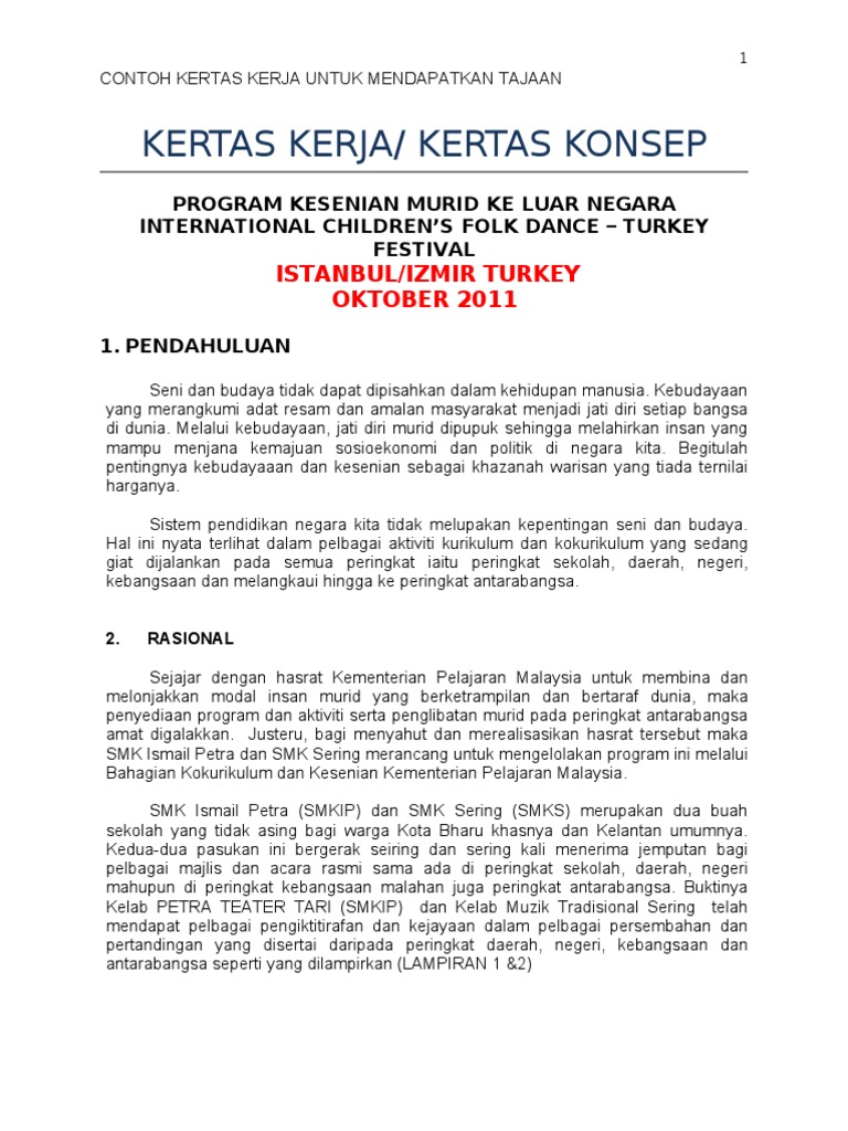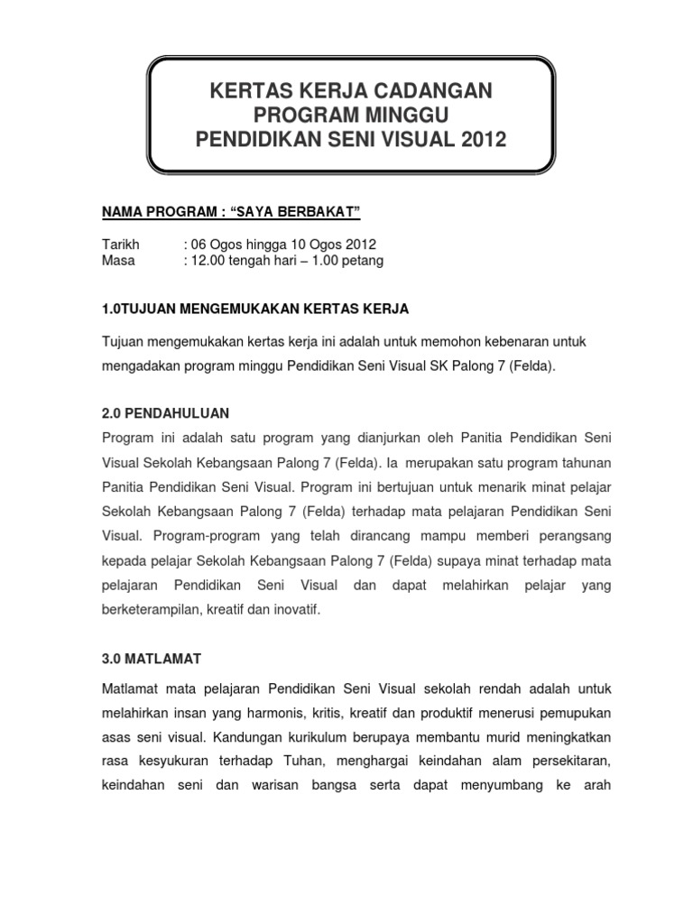 Contoh Kertas Kerja Program Kesenian Sekolah